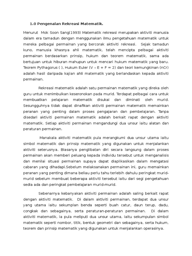 Similar to Matematik rekreasi. Fakulti sains dan rekreasi program sarjana muda 1. Selamat datang ke laman REKREASI MATEMATIK - di sini terdapat permainan Matematik yang boleh digunakan dalam proses pengajaran Matematik sekolah rendah.