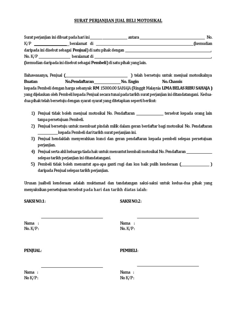 Surat Perjanjian Jual Beli Motosikal Pdf